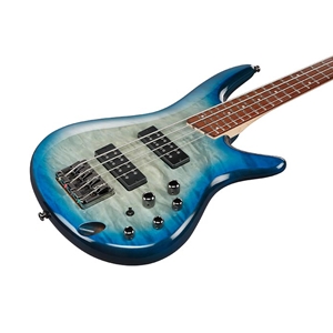 SR400 Series bass guitars are built with the aspiring professional in mind. These come equipped with a high quality bridge for optimal tone and intonation no matter your tuning or playing style. And, you'll never run out of tone options with the 3-way power tap switch, the 3 band EQ controls, and the pickup balance control. The quilted maple top and blue finish makes it look as good as it sounds.